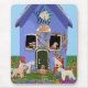This image shows adult soft coated wheaten terriers and wheaten terrier puppies at home. Puppies are looking out the window. "Mama" dog is in the other room, also looking out. The sign on the house reads: "Home is where the Wheaten is." Original artwork ?? M.Light. "Home is Where the Wheaten Is."