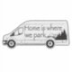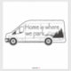 A vinyl bumper sticker for a converted camper van. Home is where we park! This is a simple black outline design perfect as a gift for those who love the outdoors.