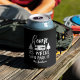 Up your RV game with custom can coolers! Keep your beverages cold on your next RV camping trip with these custom can coolers in classic black and white, sporting the phrase "home is where you park it" with an RV parked between two pine trees. Personalise with a family name, year, destination or text of your choice.