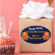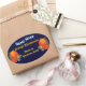A custom sticker with vintage kitchen crate art of oranges with small blossoms. The top reads Home Made in custom letters in white with a blue outline, you add your ingredient title and name in retro orange curly letters. Click Customise It to add or subtract text, change lettering style, background colours, even save your custom canning label for later!