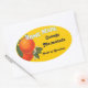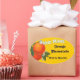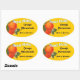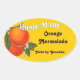 A custom sticker with vintage kitchen crate label art of oranges with small blossoms. The top reads Home Made in custom letters in white with a blue outline, you add your ingredient title and name in retro blue curly letters on an orange background. Click Customise It to add or subtract text, change lettering style, background colours, even save your custom canning label for later!