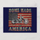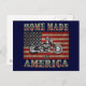 Bobbed motorcycle over an old American flag, with, "Home Made in America," in fancy vintage lettering. T-shirts, gifts.