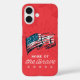 This powerful design features a sketched American flag mid-wave, surrounded by hand-drawn textures and stars. The rich red backdrop adds bold contrast and vintage charm, making this case a stand-out tribute to the brave.