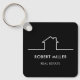 Square 2.25" x 2.25" keychain features your details on the front and back in chic lettering with a home logo design. Personalize this keychain for yourself, your company, employees and clients. MAY BE TOO LARGE FOR A LOCK BOX.