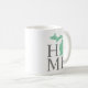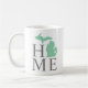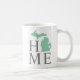 Stylish custom coffee mug features a typography design with "Home" text and Michigan state map. Click the Customise option to move the white heart city marker on both sides of the mug. You can position it directly over the city where you live or your hometown. Charcoal grey, jade / mint green, and white colours.