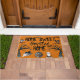 Add a spooky touch to your front door with this Home Sweet Haunted Home doormat featuring creepy black lettering and Halloween-themed illustrations of scary trees, bats, a jack-o-lantern, a ghost and a black cat all set against an orange background.