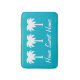 Home sweet home blue palm tree non slip bath mat. Cute design for tropical destination. Customisable background colour. Available in small , medium and large big size. Trendy Bathroom home decor with palmtree print and custom quote or name.
