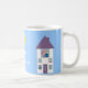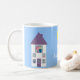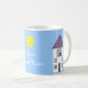 Customisable Home Sweet Home white mug with a cute cartoon illustration of a pretty house with a young couple & their pets looking out of the windows on a sunny day on a blue background with lilac border. A sweet & adorable housewarming gift for a family that has just moved or for a newly wed couple. Also a fun mug for real estate agents! You can move, re-size, or remove any of the design elements. The text, font, background colour & border are customisable. Choose the style, colour and size of your mug. If you need any assistance in customising your product please contact me through my store and I will be more than happy to help.