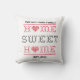 Accent your home with a trendy throw pillow. Sweet and stylish, the pillow features red and black cross stitch letters spelling out the text "Home Sweet Home" with a border of red cross stitch rows at the bottom and top. Personalise this custom design with your own text and details in matching black lettering.