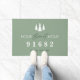 Home Sweet Home Custom Zip Code Doormat. Shown in sage + white but all colours are editable including background, text, and design elements. © Kimbellished, LLC