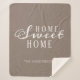 Designed with customisable tan brown background on the front side and "Home Sweet Home" in white calligraphy script and block lettering typography on the centre. Personalised with family's last name on lower front side of blanket. Makes a great gift idea for newlyweds, couples housewarming with new home, birthdays, anniversaries or anyone on any occasion.