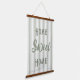 This wall hanging features a background of farmhouse ticking stripes in sage green. The text shown says "Home Sweet Home", which you can change the font, colours as well as the text if you like for a very personalised look.