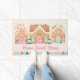 Welcome everyone to your home this holiday season with this adorable gingerbread house door mat. This design features a festive Gingerbread house decorated with pink, green and white.  The greeting reads "Home Sweet Home." Coordinates with the Gingerbread Party collection.