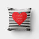 Big heart with Home sweet home text on black, silver and white striped background Throw Pillow. Text on the front side only. Text can be personalised.