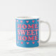 A Country-style Coffee Mug with 'Home Sweet Home' and hearts in Mix'n'Match Red and White Check Gingham and Polka Dots on a blue background which you can easily change, if you wish, using the Customize button and then the Edit button.