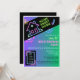 Colourful neon inspired housewarming party invitation that is easy to update with your particulars! Features a neon house, with neon verbiage spelling out "HOME SWEET HOME" at the top. Pretty purple to green gradient background and neon flowers help elevate the excitement with this one.