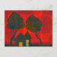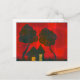duplex twin peak homes under two trees within grassy flower gardens - with a patchwork textured background :all occassion postcard or customise with text to turn it into an invitation, new home, moving house announcement - or anything else your imagination can think of