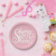 Home sweet home, pink paper plate with hand lettering quote for housewarming party, home decoration
