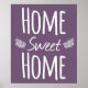 This adorable poster is the perfect accent for any room in your home. It's a purple poster that features a typographic design that reads "Home Sweet Home". The word sweet is accented by leaves on both sides.