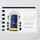 Let your family and friends know that you've moved to your new home with our beautiful and elegant new home announcement card. Our design features our own hand-painted watercolor navy blue front door. Personalise with your new home address number on the front door and add your name and address information. The reverse side features a bold modern stripe pattern. All illustrations are hand-painted original artwork by Moodthology.