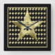 This fun wall clock features a framed pattern of simulated gold vintage movie cameras with a large gold star on a black background. Easily personalise this attractive clock with a family name or other text, by clicking Personalise this Template. This clock is the perfect addition to any family home theatre or it makes a great gift for anyone who loves movies!