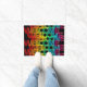 Here is a colourful home welcome mat in a unique colourful and abstract design with the word Welcome in a unique all over pattern that decorates the front door of your residence in style. The design is lightly printed on a black background intentionally.