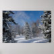 Awesome photography of a winter scene. Wind blowing snow off trees, bright blue skies. This photograph is suitable for the home or office, or as an excellent gift for that special person.