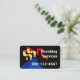An all black cover features a set of leaking gold pipes inside a red rooftop building. To the right is the oversize business name "Plumbing Service" which you can change with the contact details near the base.