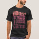 I give wanted to give this a 4 instead of a 5 because these Basic DARK T0shirts run unexpectedly SLIM or Narrow. Which is great if you do not have a potbelly, but I have a paunch. It isn't the shirt's fault that I've got a beer belly. The design and shirt itself is a quality cotton shirt. The color is more of a deep purple, but still a very pretty color. The Basic DARK T-shirts run a bit SLIMMER than the Basic Ts. The neck is a fraction narrower (or seems to be narrower) also. I'm a paunchy middle-aged woman and my neck is 12 inches (31cm) thick and the neckline fell about the same as in the photo of the man, and I had the desire to tug it a bit. So if you're a thick necked man or like loose shirts, be aware these are slimmer shirts. Once I get rid of my lockdown paunch it'll look great. The shirt washed well in cold water with no apparent bleeding. We don't have a dryer, so it hung dry. Did not shrink. Love the colors and the design. The design looks smaller on my shirt than it does on the model on-line. But still, it looks good on the shirt. The printing looks as it does on the model, just the size seems fractionally smaller. Washed garment in cold water, hung dry and design appeared unaffected.