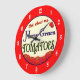 A funny gardener clock reading; Ask about my Home Grown Tomatoes in retro letters with vintage tomato art and white numbers on a red background. An original vintage look advertising sign for gardeners, cooks and tomato snobs. Click Customise It to add your name or message, change background colours and more.