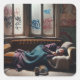 Homeless Man Sleeping in Abandoned Building Square Sticker
