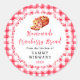 This fun and whimsical sticker features a loaf of cranberry bread on a white lace doily and red gingham background. It is perfect for labelling your homemade goods. The text combines handwritten script and serif fonts for a stylish and modern look.