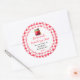 This fun and whimsical sticker features a jar of cranberry jam on a white lace doily and red gingham background. It is perfect for labelling your homemade goods. The text combines handwritten script and serif fonts for a stylish and modern look.
