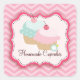 Two cupcakes, one teal and the other pink, both with a cute pink cherry on the top. Perfect for cupcake and baking lovers. Pink chevron pattern on the background, featuring a pink label written as model "handmade cupcakes", which can be easily customised with message, name or any other text of your choice.