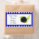 This pretty label is perfect to use on your personalised homemade canned or jar goods. The label is outlined in a blue and white checked border. The centre is white with a blackberry on the right side. All text is customisable.