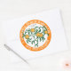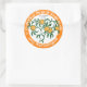 Personalised homemade orange marmalade jam jar round stickers which also can be used for other preserve products. Featuring a dark orange border with light orange circles, a rustic orange tree and an easy to use food label template.