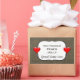 Trendy, rustic burlap country kitchen canning label stickers- Background is rustic burlap texture look. In the centre is a curved, white emblem which reads 'Mum's Homemade Peach Jelly' in black letters. Change name to different food product if you like, or any text you wish. Below it reads 'Spread Some Love' in calligraphy style lettering. Simple red puffy look hearts decorate each side. Note: All images are printed. Not actual burlap. Country rustic style stickers for homemade food gifts, canning labels, baking stickers, Christmas cookies, bake sales, product branding, etc. Click Customise option to change text colours, size, and font styles.