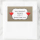 Rustic country kitchen canning label stickers- Background is country, brown Kraft paper look. In the centre is a curved, white emblem which reads 'Mum's Homemade Peach Jelly' in a mix of country style and modern, black letters. Add custom change to different food product if you like, or any text you wish. Below it reads 'Spread Some Love' in calligraphy style lettering. Simple red puffy look hearts decorate each side. Note: All images are printed. Not actual Kraft paper. Country rustic kitchen stickers for homemade food gifts, canning labels, baking stickers, bake sales, product branding, etc. Click Customise option to change text colours, size, and font styles.