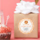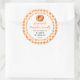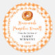This fun and whimsical sticker features a pumpkin doughnut on a white lace doily and orange gingham background. It is perfect for labelling your homemade goods. The text combines handwritten script and serif fonts for a stylish and modern look.