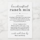 This Ranch Mix gift sticker is perfect for homemade seasoning gifts, holiday baskets, teacher gifts, neighbor treats, and farmers market products. Designed with clean, modern style, each sticker includes simple instructions for making ranch dip and dressing, plus a space for “Made with love by…” so you can personalize your creation. Use it with small jars, spice containers, or mix packets for a charming DIY touch.