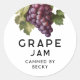 Editable homemade grape jam canning label featuring a bunch of red grapes. Make your own canning labels for your favourite homemade recipes. Perfect for preserves, homemade gifts or as kitchen pantry organiser.