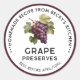 Editable homemade grape preserves canning label featuring a bunch of red grapes. Make your own canning labels for your favourite homemade recipes. Perfect for preserves, homemade gifts or as kitchen pantry organiser.