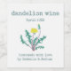 Homemade with love Dandelion Wine label , This design features a watercolour illustration of a Dandelion Wine and templates set up ready for you to personalise and customise . Give your homemade gifts the finishing touch .