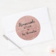 Modern "homemade with love" sticker with a black font on a rose gold glitter background embellished by a cute red heart. Customise text.
