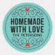 A personalised teal "homemade with love" sticker. Make it yours by adding your own name. A pretty finishing touch for all of your homemade or handmade gifts. Other colours available. Designed for you by Blackberry Boulevard.