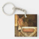 Digital design of a mule with his name plate on the stall door on a square acrylic key chain.