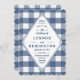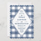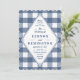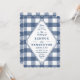 A blue gingham pattern sets the tone for this not-so-stuffy wedding invitation. Perfect for an outdoor wedding.