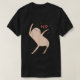 I give wanted to give this a 4 instead of a 5 because these Basic DARK T0shirts run unexpectedly SLIM or Narrow. Which is great if you do not have a potbelly, but I have a paunch. It isn't the shirt's fault that I've got a beer belly. The design and shirt itself is a quality cotton shirt. The color is more of a deep purple, but still a very pretty color. The Basic DARK T-shirts run a bit SLIMMER than the Basic Ts. The neck is a fraction narrower (or seems to be narrower) also. I'm a paunchy middle-aged woman and my neck is 12 inches (31cm) thick and the neckline fell about the same as in the photo of the man, and I had the desire to tug it a bit. So if you're a thick necked man or like loose shirts, be aware these are slimmer shirts. Once I get rid of my lockdown paunch it'll look great. The shirt washed well in cold water with no apparent bleeding. We don't have a dryer, so it hung dry. Did not shrink. Love the colors and the design. The design looks smaller on my shirt than it does on the model on-line. But still, it looks good on the shirt. The printing looks as it does on the model, just the size seems fractionally smaller. Washed garment in cold water, hung dry and design appeared unaffected.