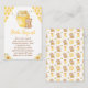 This cute and whimsical watercolor book request enclosure card features an adorable bear leaning against a jar of honey, bees, honeycomb, floral arrangements and balloons. The text combines handwritten script and sans serif fonts for a stylish and modern look. This is perfect for a bee or bear themed baby shower.
