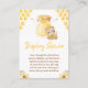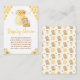 This cute and whimsical watercolor display shower enclosure card features an adorable bear leaning against a jar of honey, bees, honeycomb, floral arrangements and balloons. The text combines handwritten script and sans serif fonts for a stylish and modern look. This is perfect for a bee or bear themed baby shower.